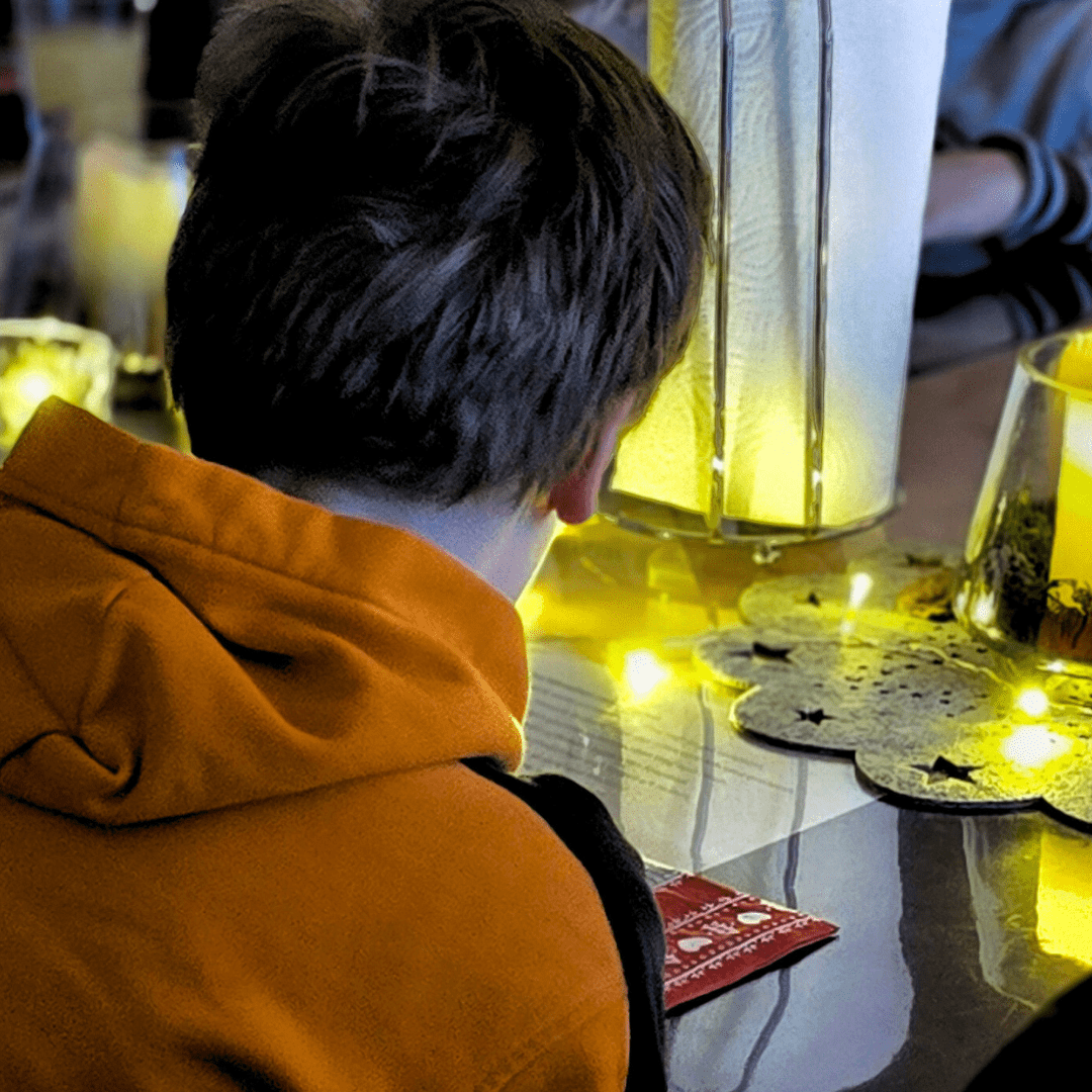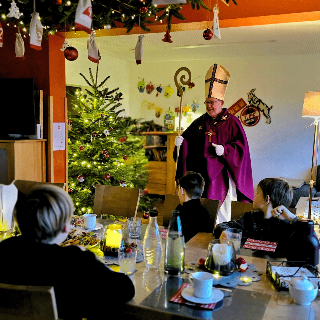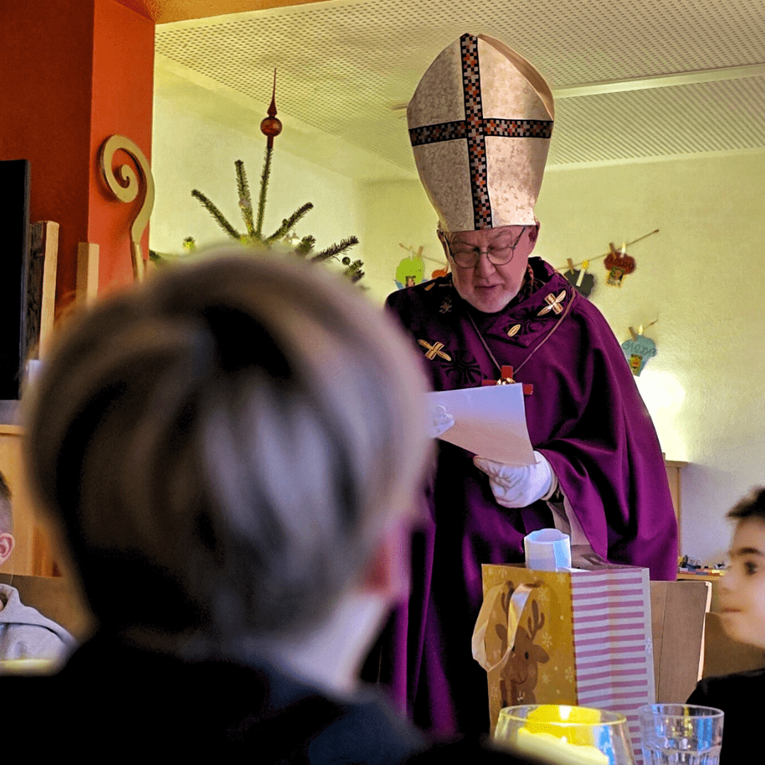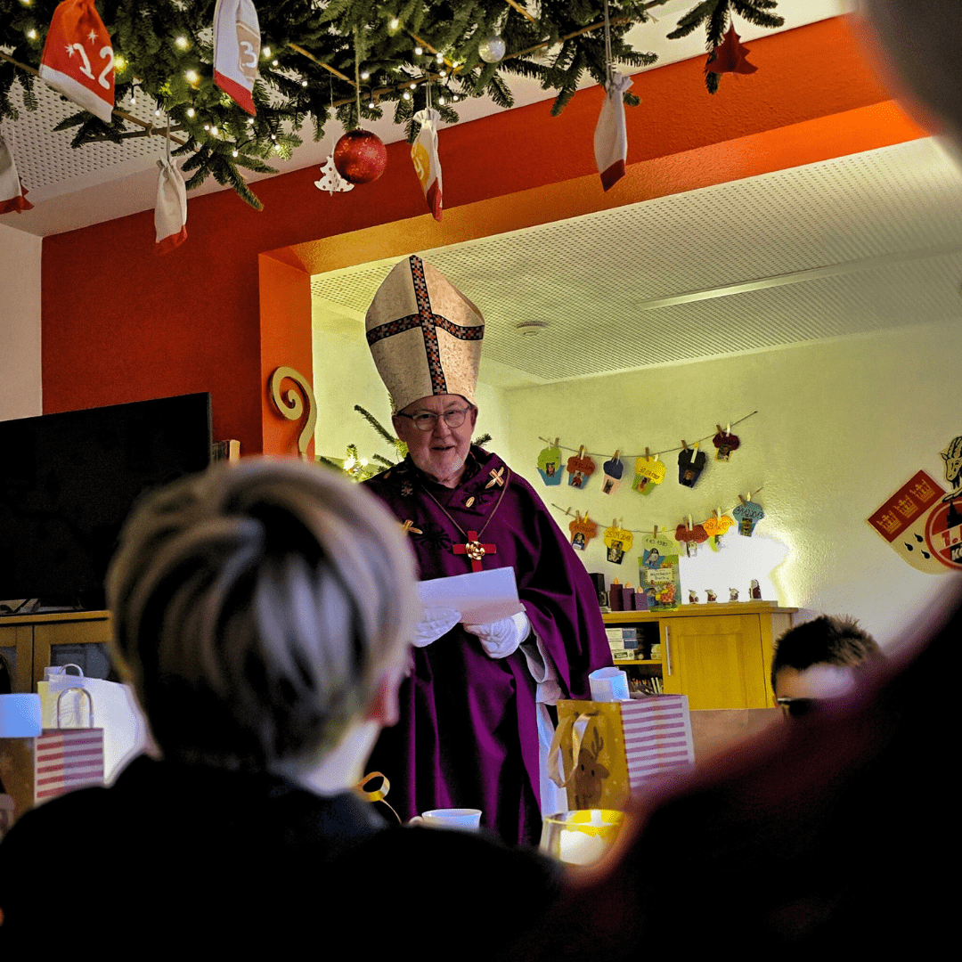 Als der er nach und nach unsere Gruppen betrat, wurde es für einen Moment still. Diese warme, erwartungsvolle Stille, die entsteht, wenn enthusiastische Erwartung und Neugier sich gegenseitig an die Hand nehmen. Leuchtende Augen, schüchterne Schritte und Gekicher. Der Nikolaus nahm sich Zeit: Für jedes Kind. Für jedes Zuhören. Für jedes Strahlen.